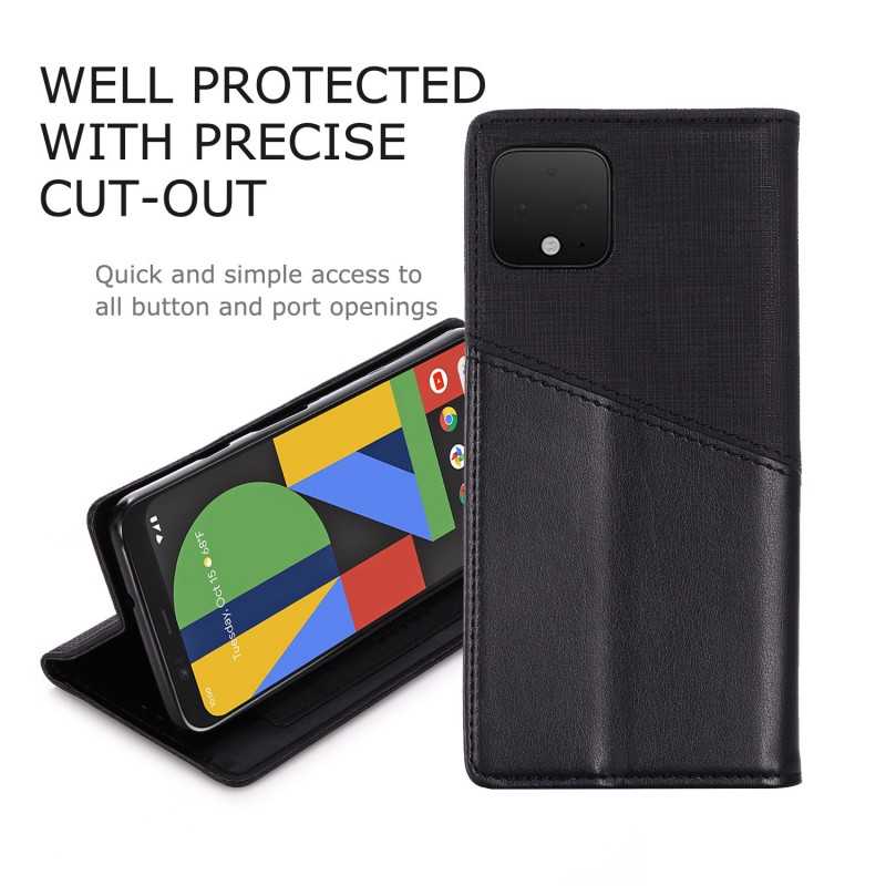 Fodralet hålls stängd magnetiskt. Det finns sammanlagt två fack. Ett där du får plats med två kort (kreditkort/ID-kort) samt ett för sedlar. Stativfunktionen gör så att du enklare kan titta på film/foto.