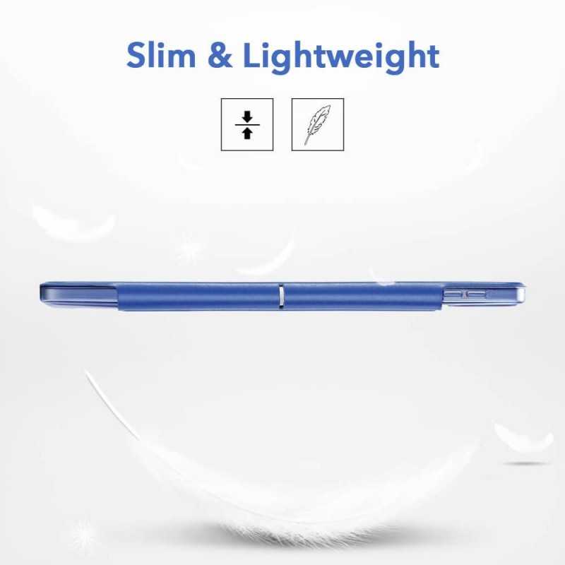 Smidig och elegant flipfodral som fästs på baksidan av surfplattan och är precisionskuret så att den passar surfplattan utmärkt. Fodralet har även öppningar för alla kontakter, knappar och kamerafunktioner. Den veckade framsidan skyddar skärmen mot repor och damm, och kan vikas ihop till ett stativ i olika vinklar. Detta hjälper dig hitta rätt vinkel för att läsa, skriva eller titta på videor.