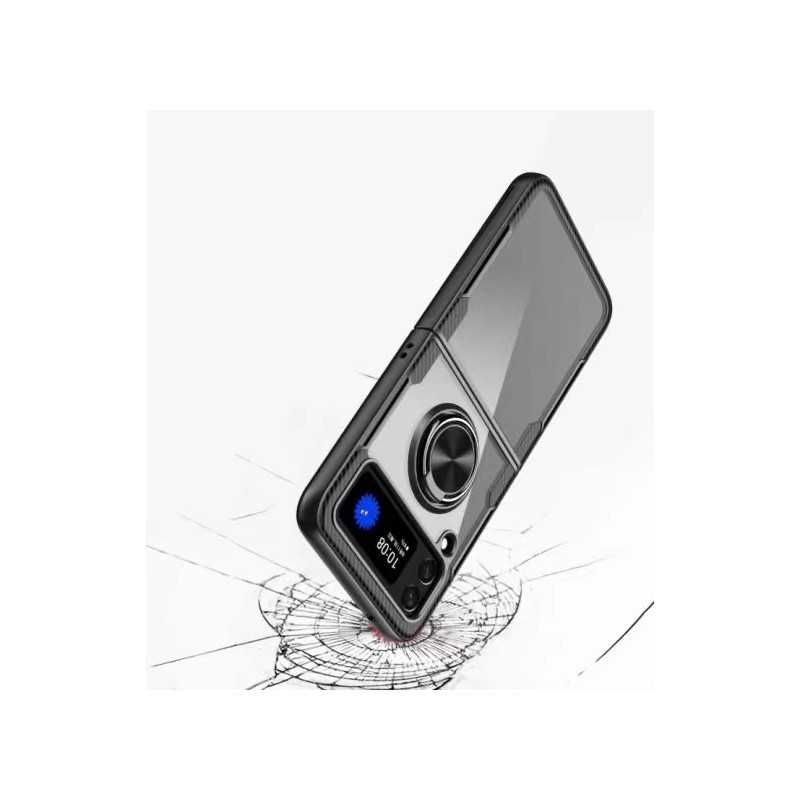 Samsung Z Flip 4 stöttåligt skal med ringhållare ger optimalt skydd och stil, perfekt för daglig användning och smidig hantering.