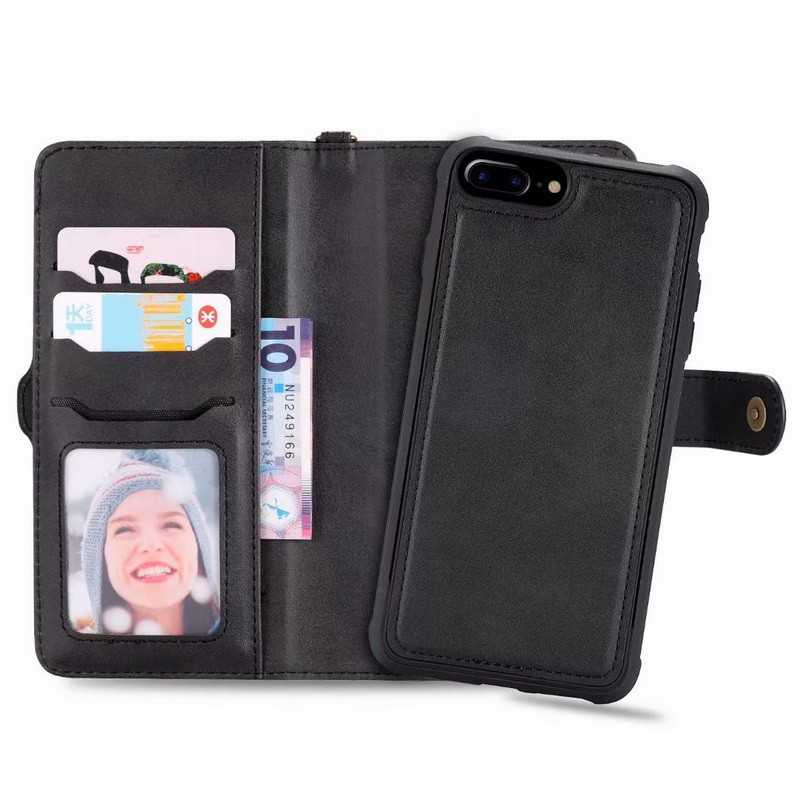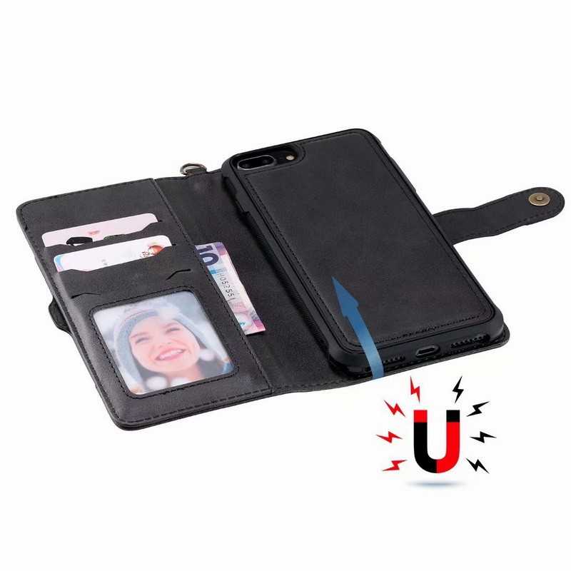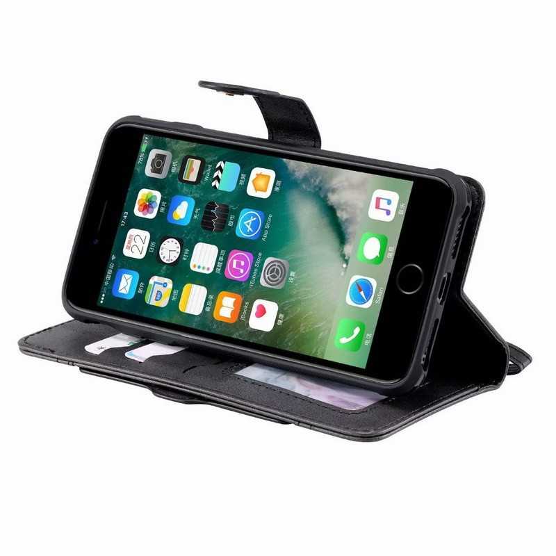 iPhone 8 Plus fodral med magnetskal och 6 fack erbjuder stil och funktionalitet, perfekt för att skydda din telefon och förvara kort och sedlar.