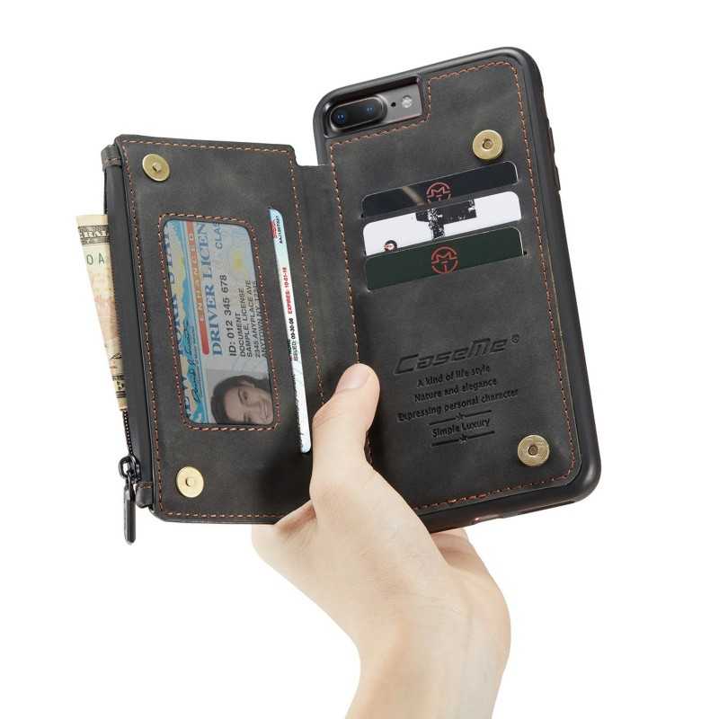 iPhone 8 Plus Skal Korthållare & Dragkedja 5-FACK CaseMe Flippr kombinerar stil och funktion med fem fack för kort och kontanter. Skydda din telefon med elegans.