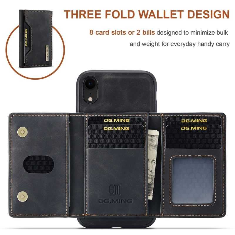 Skydda din iPhone XR med DG.MING:s stöttåliga skal som har plats för åtta kort och kombinerar stil med praktisk funktionalitet.