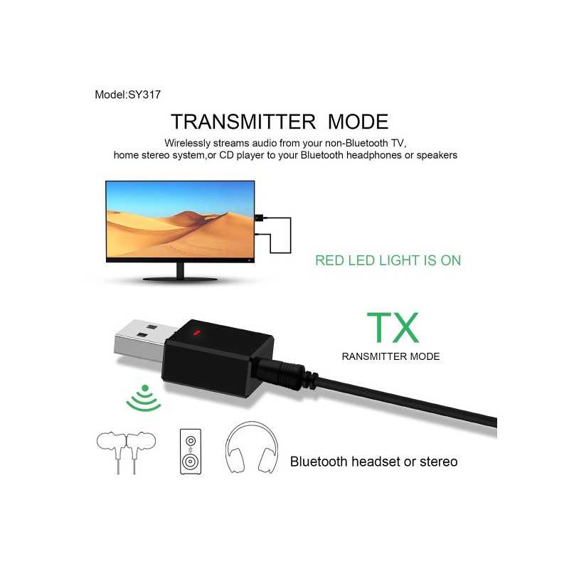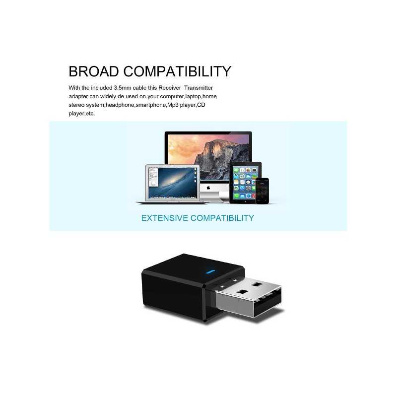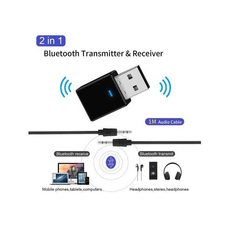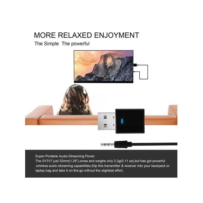 En liten, smidig och trådlös ljudsändare och mottage som låter dig strömma trådlöst från din bluetooth-TV, stereoanläggning eller CD-spelare till bluetooth hörlurar eller högtalare.