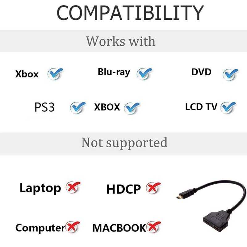 Paketet innehåller: 1PC * HDMI-hane till 2 HDMI-hona 1-i-2-splitterkabel