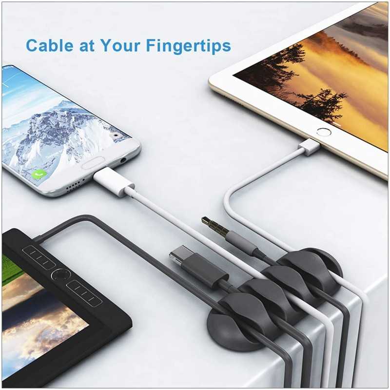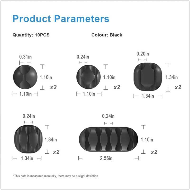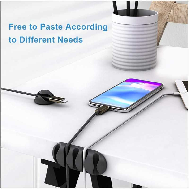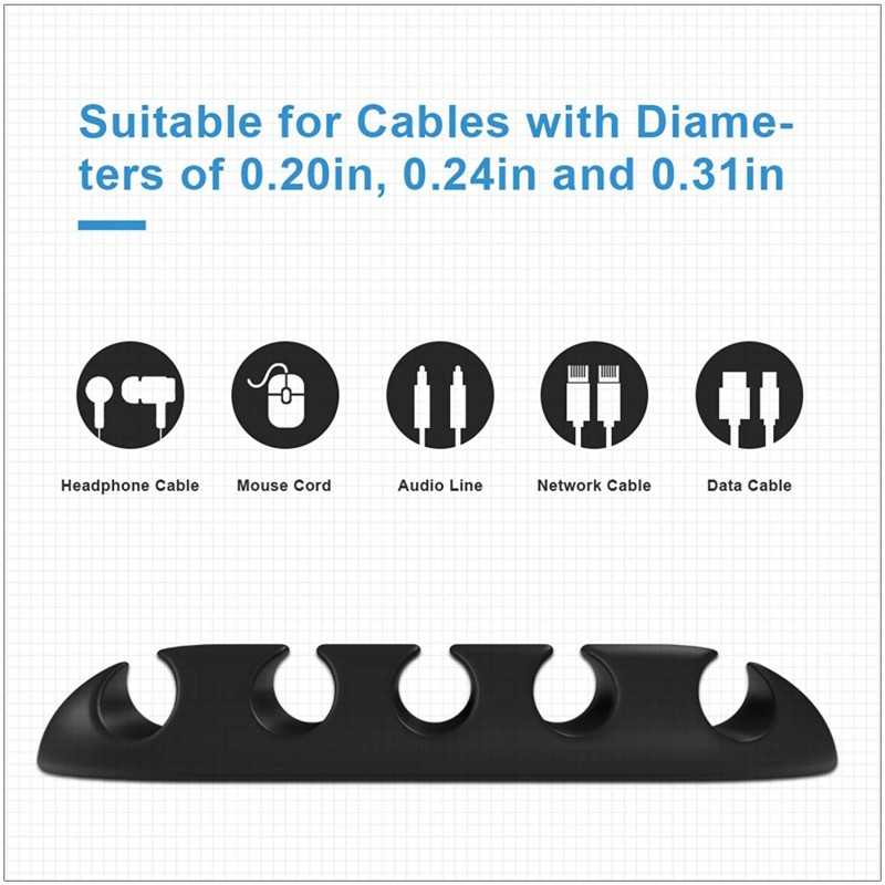 Förutom att förhindra sladdar från att falla av ett skrivbord, kan de användas på möbler eller på väggar för att hålla reda på besvärliga sladdar. Fästes med självhäftande tejp som medföljer. Vänta sedan två timmar innan du sätter in kablar.