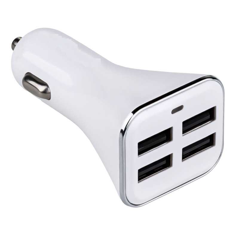 Äkta EU Certifierad universell 34W billaddare 5V/6.8A med 4 USB-portar för anslutning av alla bärbara enheter som kan drivas med en USB-kabel. En idealisk lösning för människor som gillar att använda mobila enheter när de reser. Ger snabb laddning av olika typer av surfplattor, smartphones, navigering, powerbanks och alla andra mobila enheter som drivs via microUSB -port.