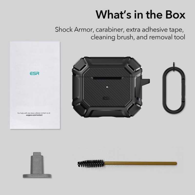 Ett bepansrat skal från märket ESR Shock Armour skapat för aktiva människor som värdesätter säkerheten hos sina Apple Airpods. Tillverkad av högkvalitativ TPU, den kommer att skydda mot repor och skador, och i händelse av ett fall kommer de upphöjda kanterna på fodralet att ge ytterligare skydd mot skador.