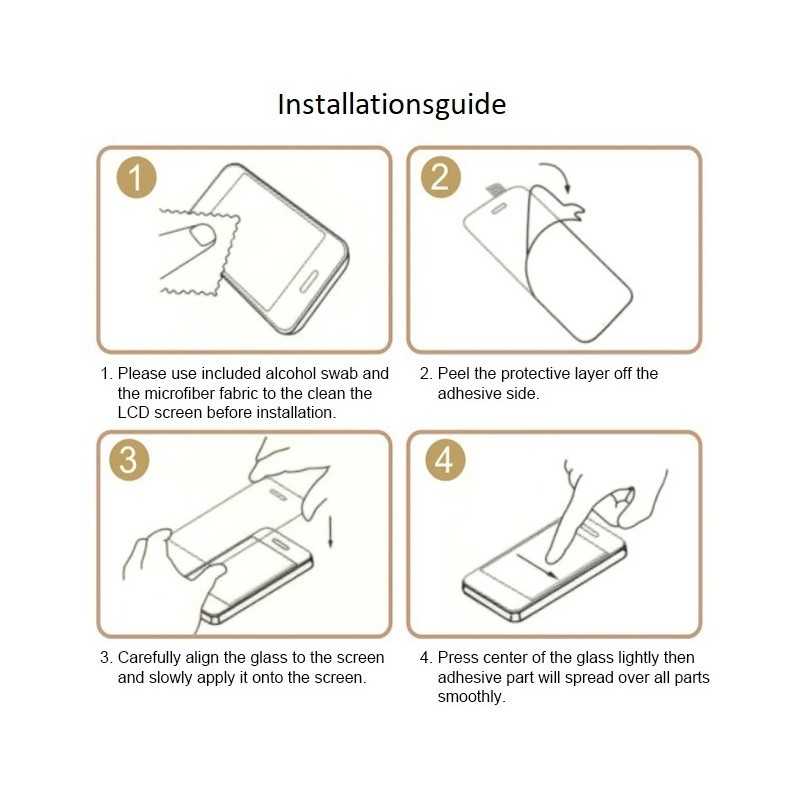 Skyddet appliceras enkelt utan att bubblor uppstår. Det behövs inte ens lim eller tape. Glasskyddet fäster mot telefonens display på ett elektrostatisk sätt och kan tas bort utan att efterlämna några rester av lim eller annat. Ej kompatibel med fingeravtrycksläsaren. Skyddet påverkar inte ansiktsigenkänning eller lösenordsupplåsning.