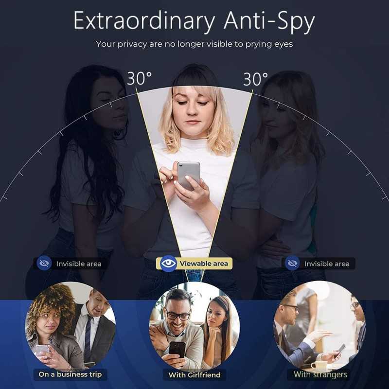 Allra senaste inom skärmskydden. Ett tunt 0,26mm anti-spy glas som skyddar mot fingeravtryck, repor och mot en dyrbar reparation av displayen om olyckan skulle vara framme samtidigt som den försvårar att obehöriga ska kunna se din display.