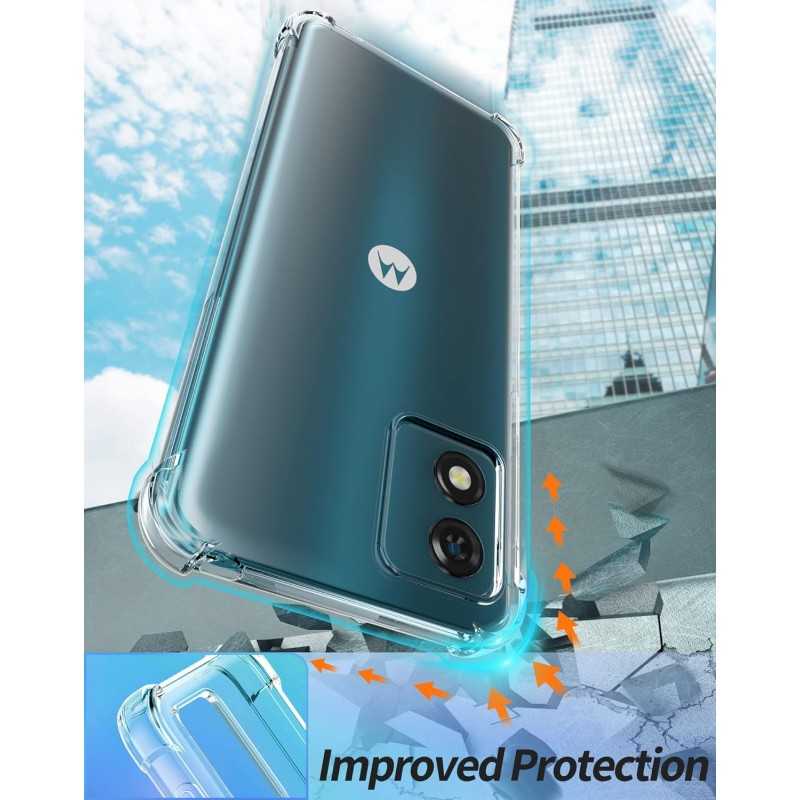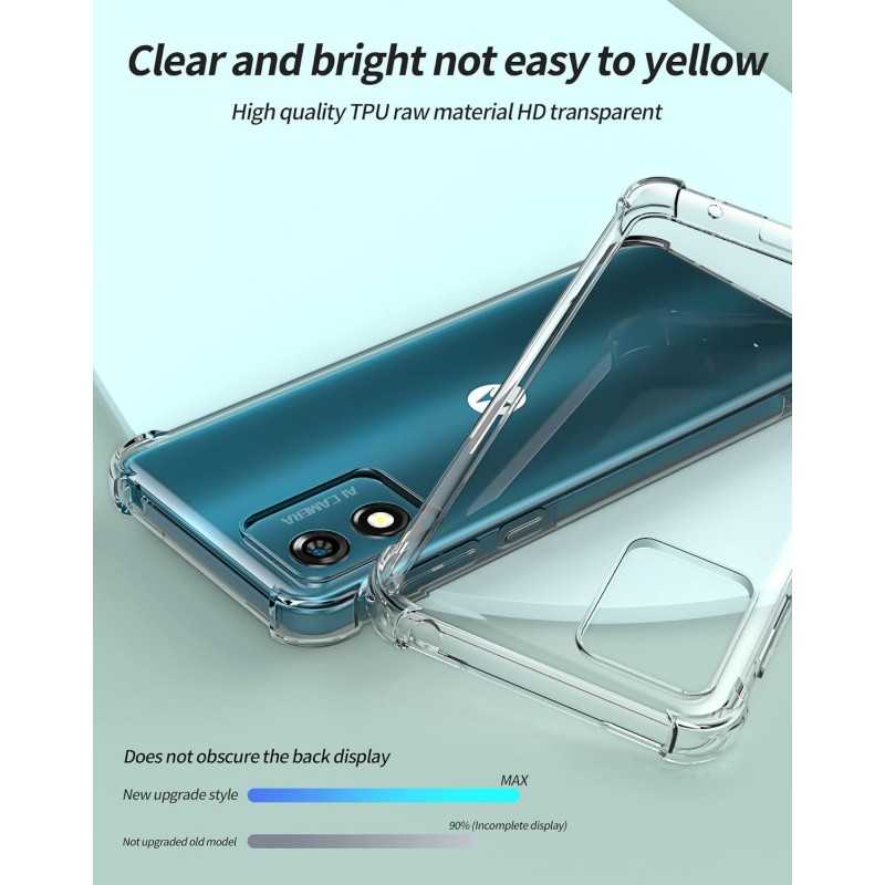 De fyra hörnen på skalet är konstruerade som en elastisk buffert som effektivt kan distribuera och därmed dämpa kraften från stötar, vilket skyddar din telefon från skador vid exempelvis fall. Den upphöjda ramen hindrar skärmen att komma i kontakt med en plan yta om telefonen placeras med skärmen nedåt.