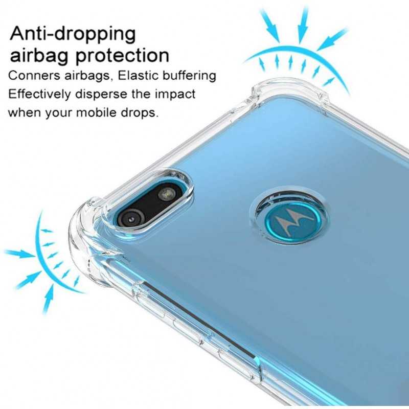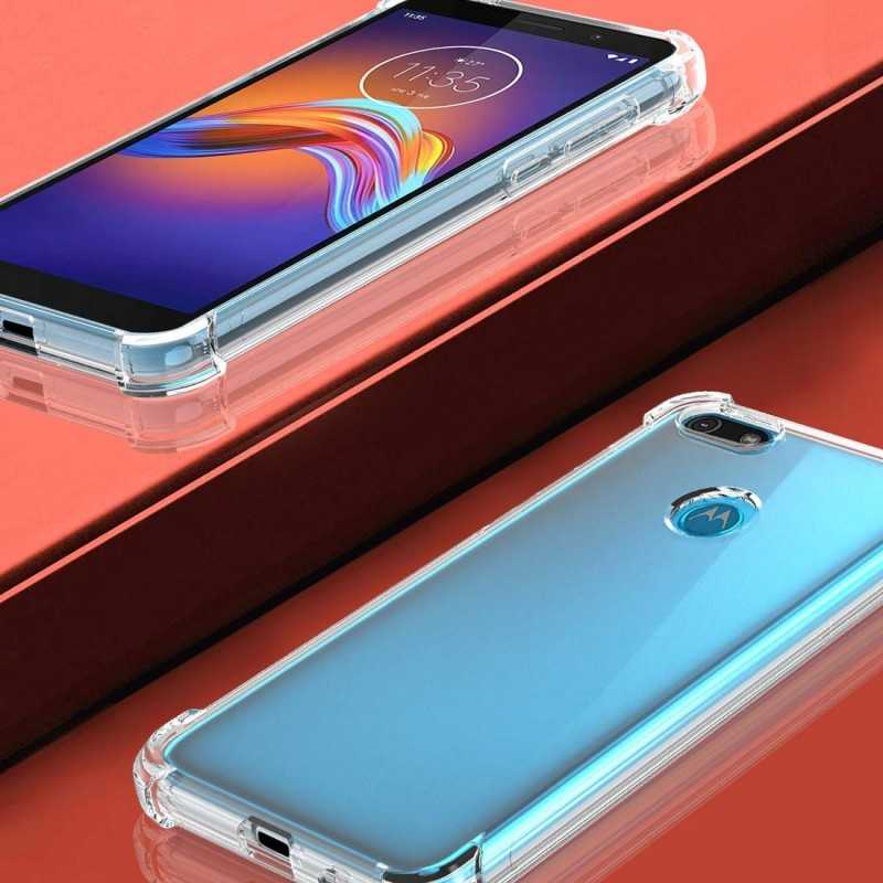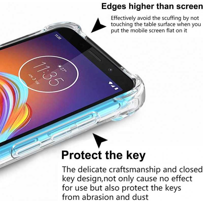 De fyra hörnen på skalet är konstruerade som en elastisk buffert som effektivt kan distribuera och därmed dämpa kraften från stötar, vilket skyddar din telefon från skador vid exempelvis fall. Den upphöjda ramen hindrar skärmen att komma i kontakt med en plan yta om telefonen placeras med skärmen nedåt.