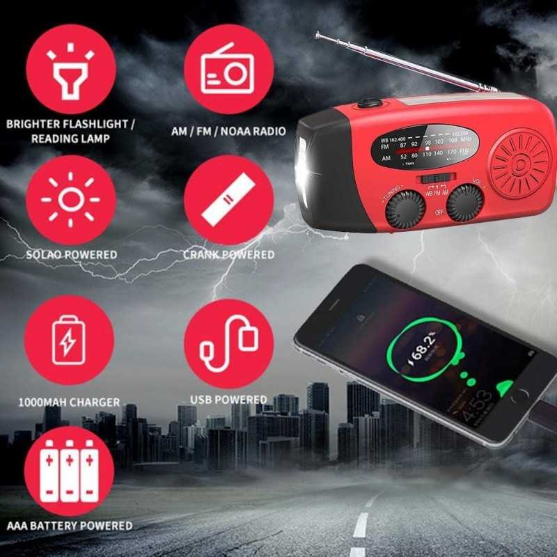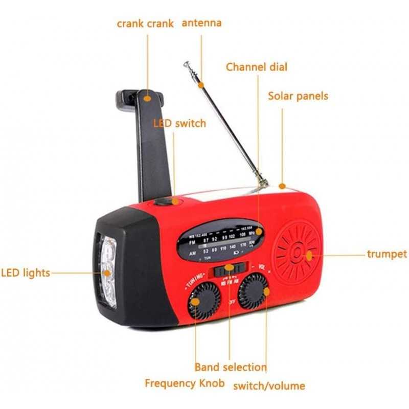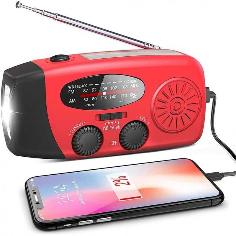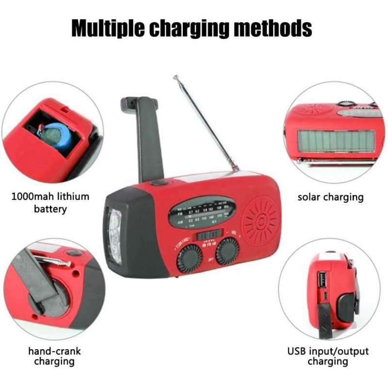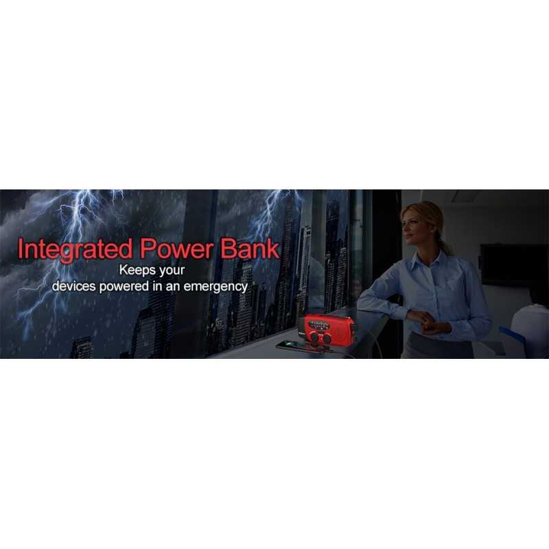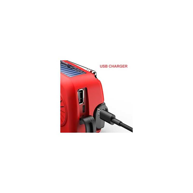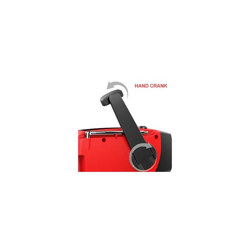 Tack vare sina 3 laddningsmetoder är den självdrivna radion alltid redo att gå! Det kraftfulla 2000mAh-batteriet kan laddas via en USB-kabel, solpanelen eller handveven.