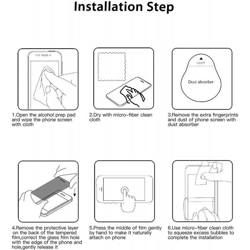 Skärmskyddet ger ingen garanti för att originaldisplayen ej går sönder vid eventuell olycka med telefonen. Skärmskyddet har en utskärning för att möjliggöra användning av fingeravtryck upplåsning.