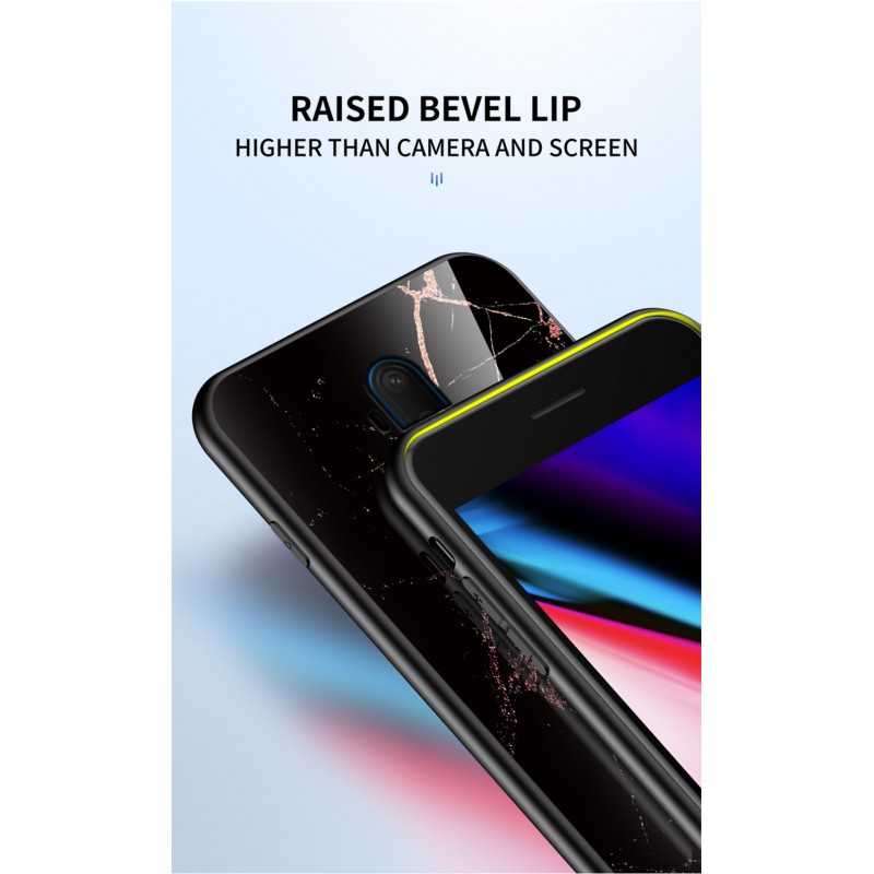 Stötdämpande ultratunnt skal med baksida av härdat glas som ger din mobil ett exklusivt utseende samtidigt som den skyddar din dyrbara mobil mot smuts, damm, repor och kan även motverka skador vid stötar. Den mjuka ramen gör så att du enkelt kan sätta dit din mobil.