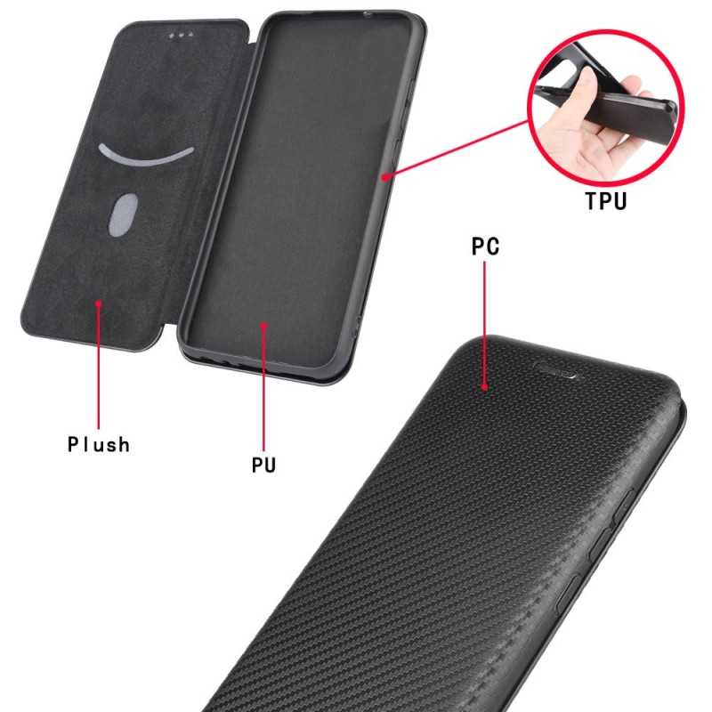 Mjuk, smidigt och elegant flipfodral med kolfiberdesign som skyddar telefonens fram- och baksida mot repor smuts och damm. Detta samtidigt som det tillför en snygg och unik touch på din telefons utseende.