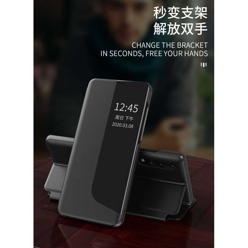 Smart View fodralet från Tech-Protect är tillverkat av robust polykarbonat klätt i ett högkvalitativt lager konstläder i en slimmad och exklusiv design. Med en app installerad har skalet förmågan att visa tiden via ett snyggt integrerat fönster i toppen av fodralet. Detta gör att du slipper öppna upp fodralet när du bara vill veta vad klockan är.