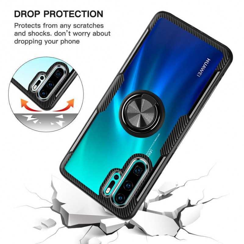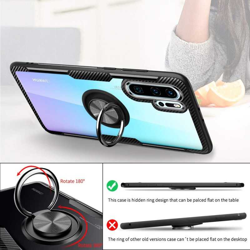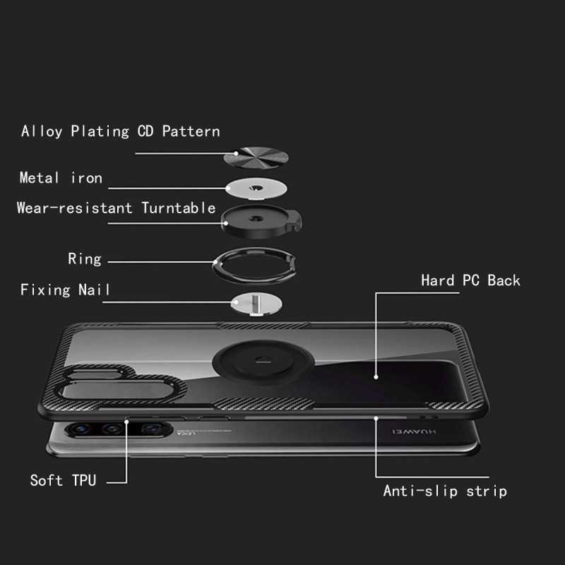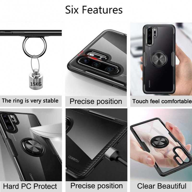 På baksidan finns en fingerring som är 360 grader roterbar så du kan hålla din telefon både längre tid och mer bekvämt, ringen kan även fungera som ställ för bekvämt tittande av film m.m. Förutom detta så finns det en metallplatta på baksidan som möjliggör att man t.ex. kan sätta fast den mot en magnetisk bilhållare eller andra magnetiska ytor. Skalet har en matt finish vilket minskar risken för fula fingeravtryck och ger en modern look.