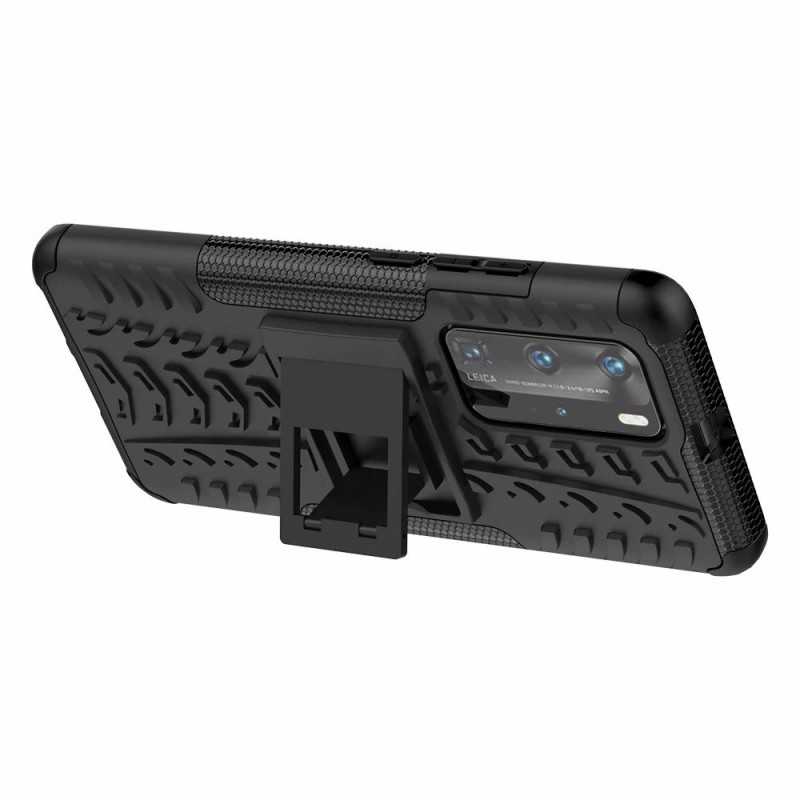 Skalet har en upphöjd ram vilket hindrar skärmen att komma i kontakt med en plan yta om telefonen placeras med skärmen nedåt. Det robusta fodralet har också ett praktiskt backstand (utfällbart ställ) som tillåter skrivbords visning av olika medier som film, serier.