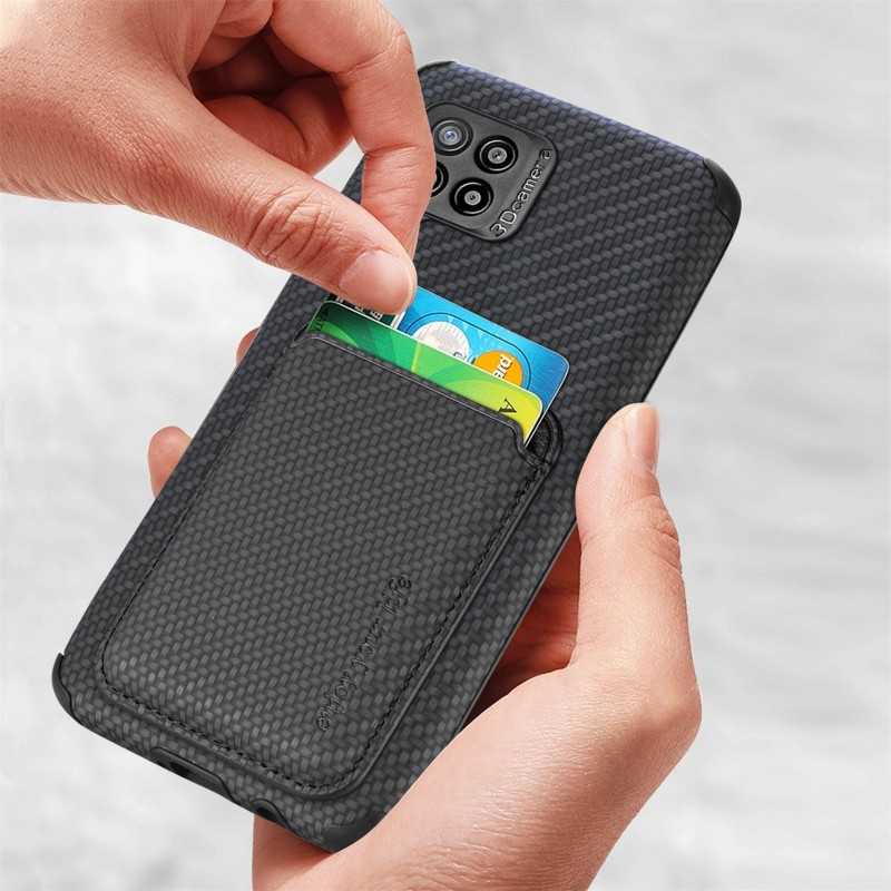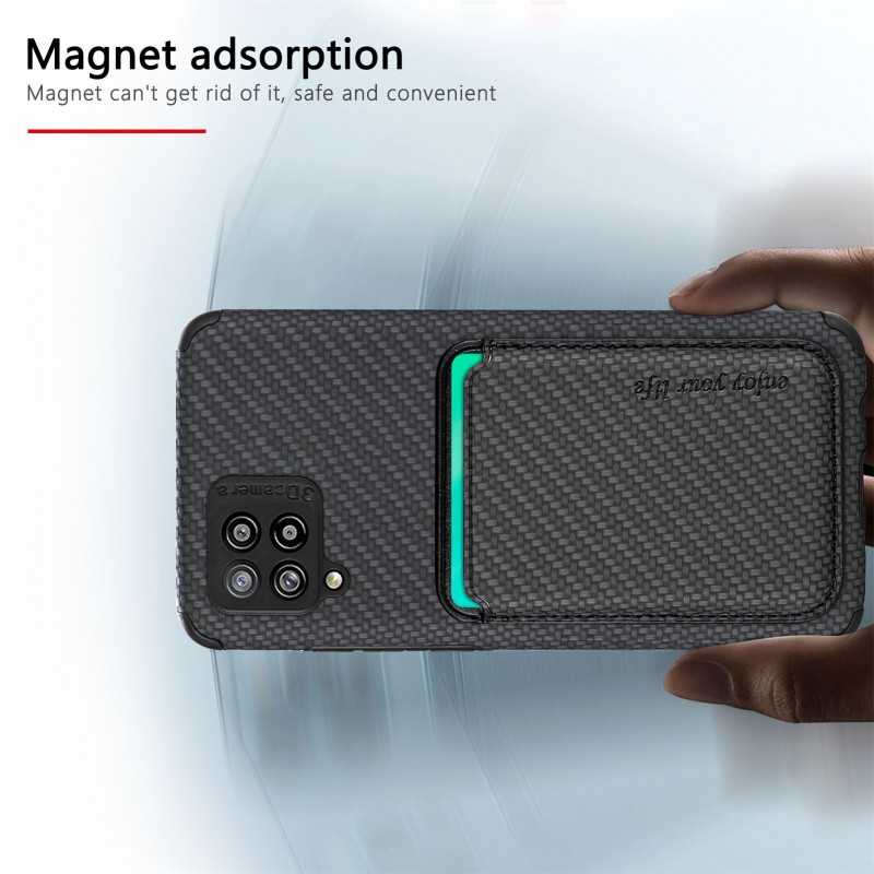 Skydda din Samsung A22 4G med detta stöttåliga skal som har en magnetisk korthållare och RFID-skydd för säker förvaring av kort.