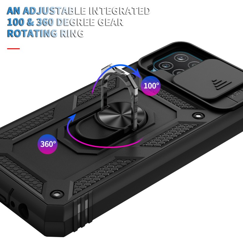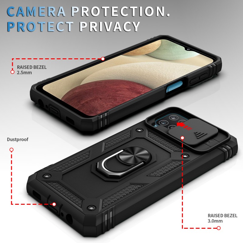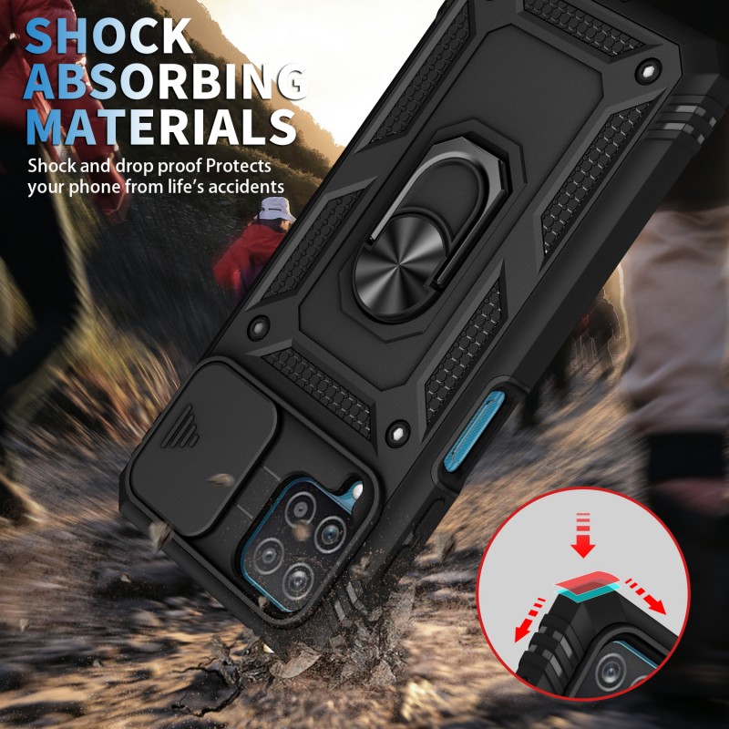 Skydda din Samsung A42 5G eller M42 5G med detta stiliga och funktionella hybridskal. Med en elegant svart design kombinerar detta skal både stil och säkerhet. Den inbyggda ringhållaren ger ett extra grepp, vilket gör det enklare att hantera din telefon, särskilt när du tar selfies eller pratar i telefon. Dessutom skyddar det integrerade kameraskyddet din kameralins från repor och skador, vilket säkerställer att du alltid kan fånga de bästa ögonblicken utan oro.