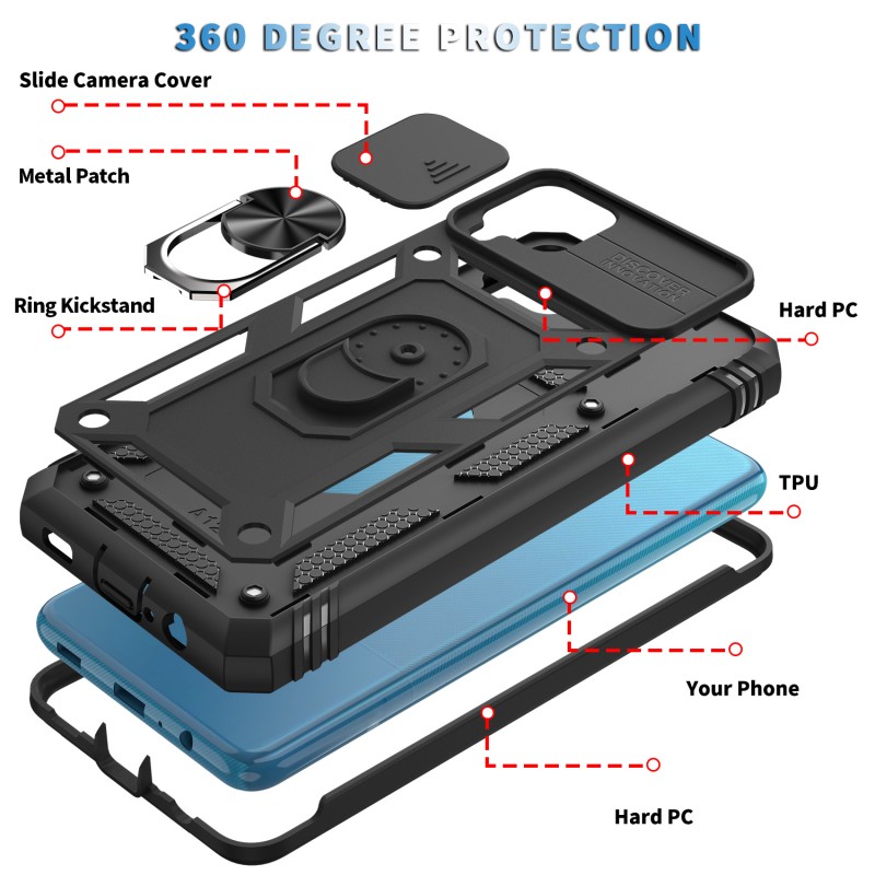 Funktioner: Hybridskal, Ringhållare, Kameraskydd