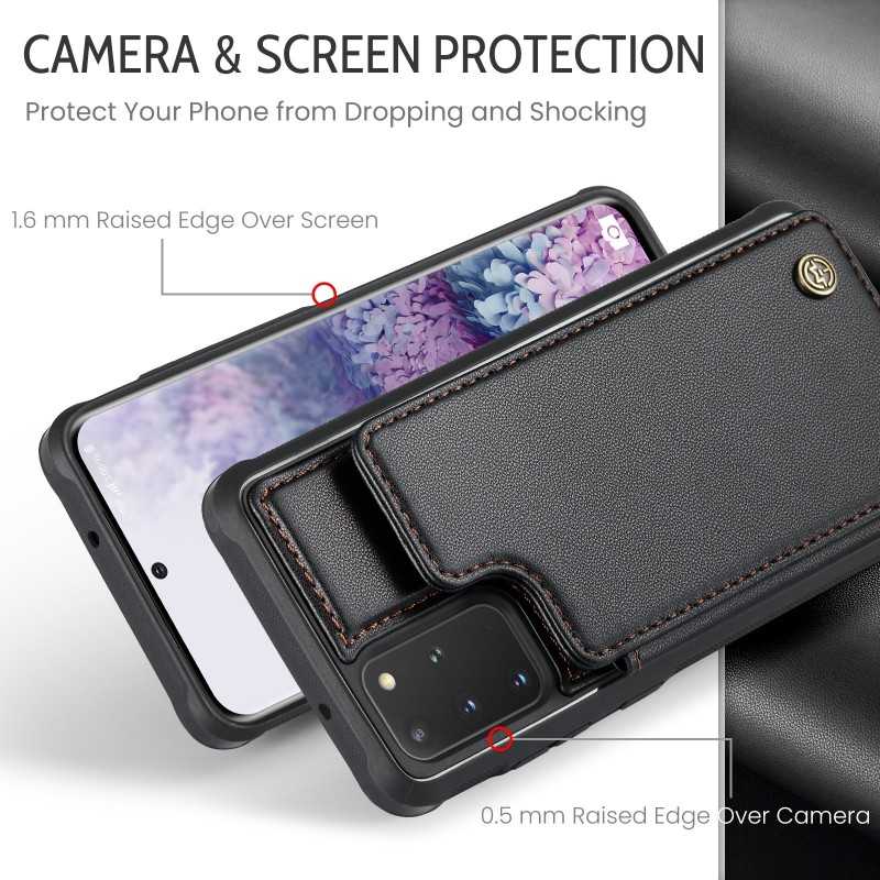 CaseMe Stöttåligt Skal Korthållare Stativ 4-Fack för Samsung S20 erbjuder skydd och praktisk förvaring av kort i en stilren design.