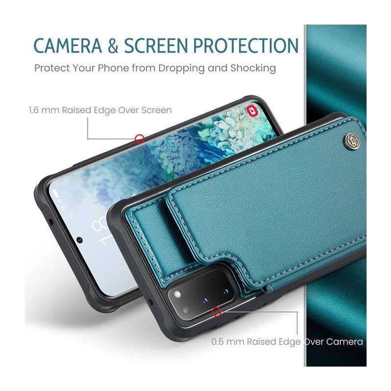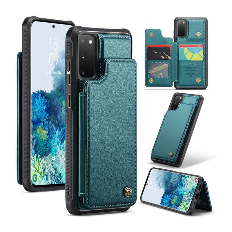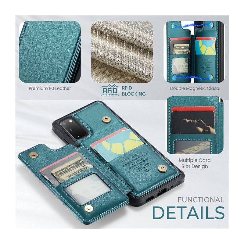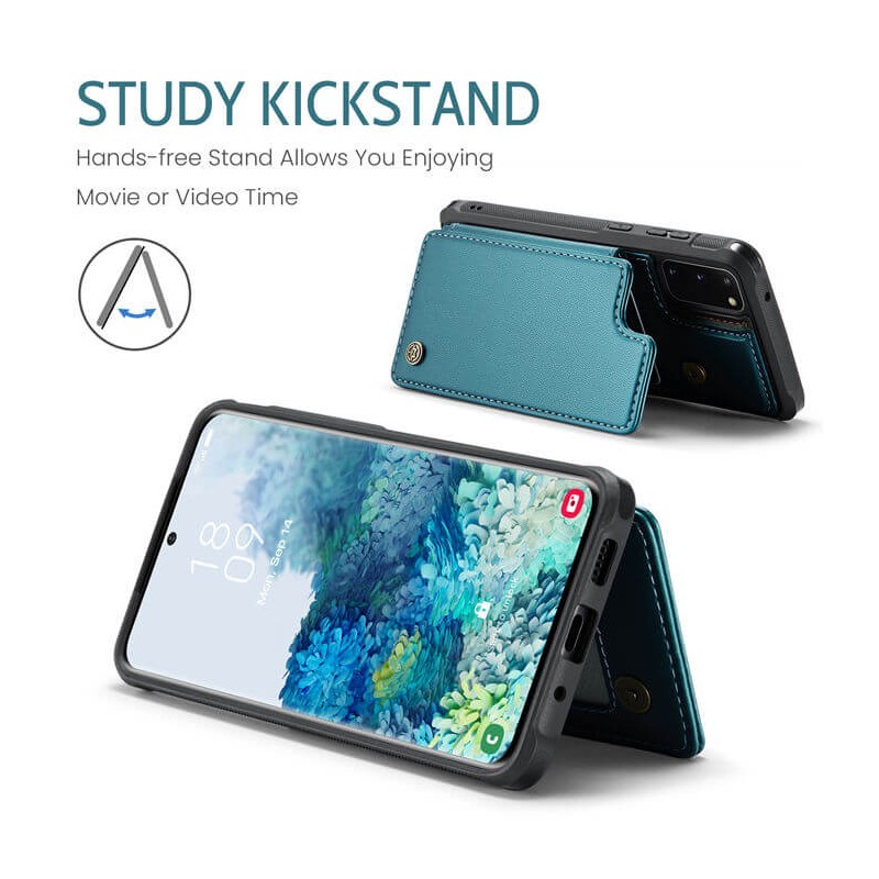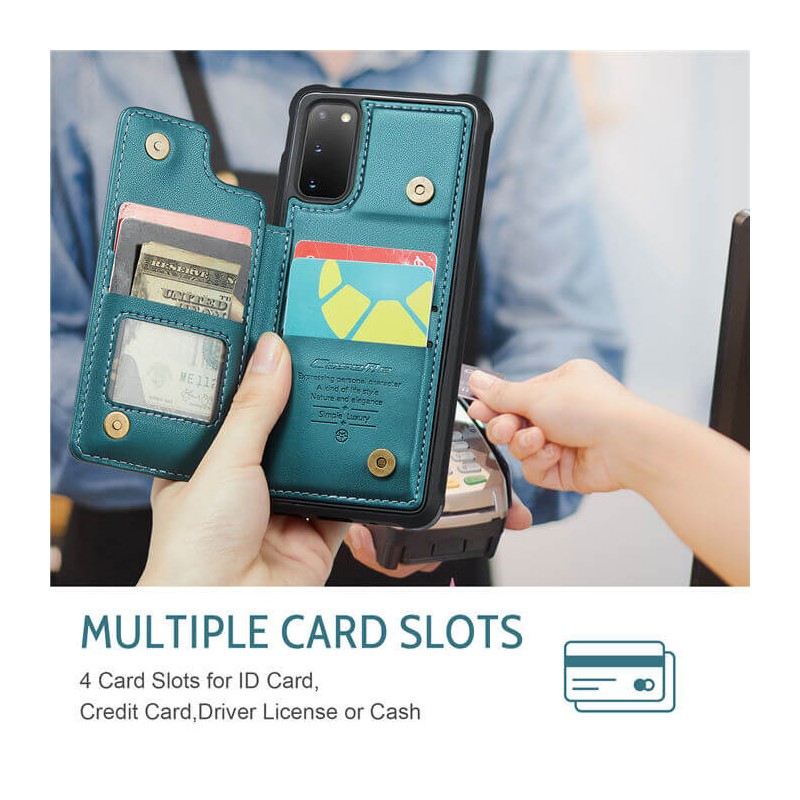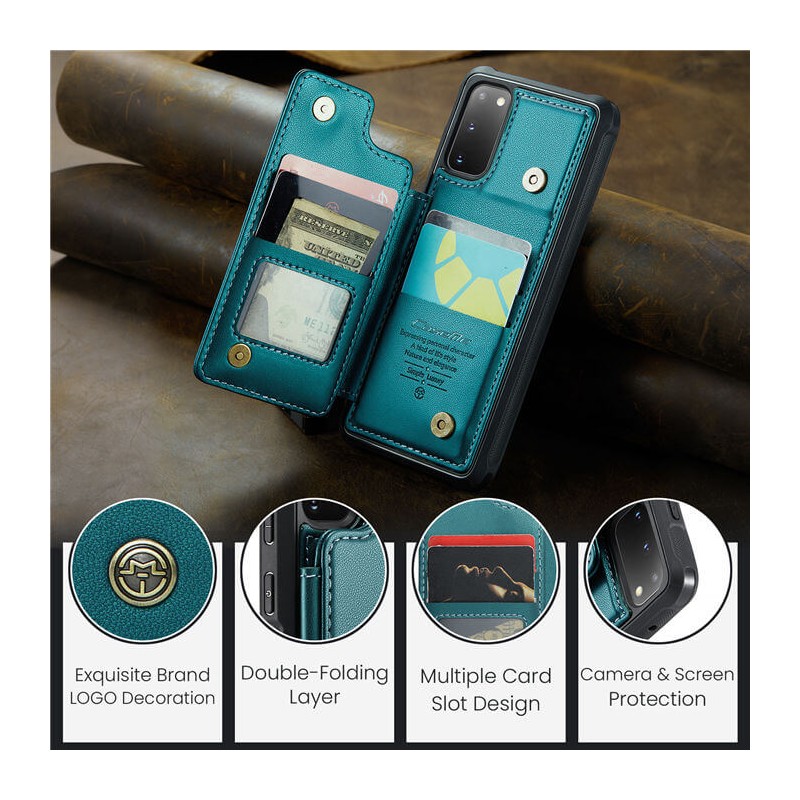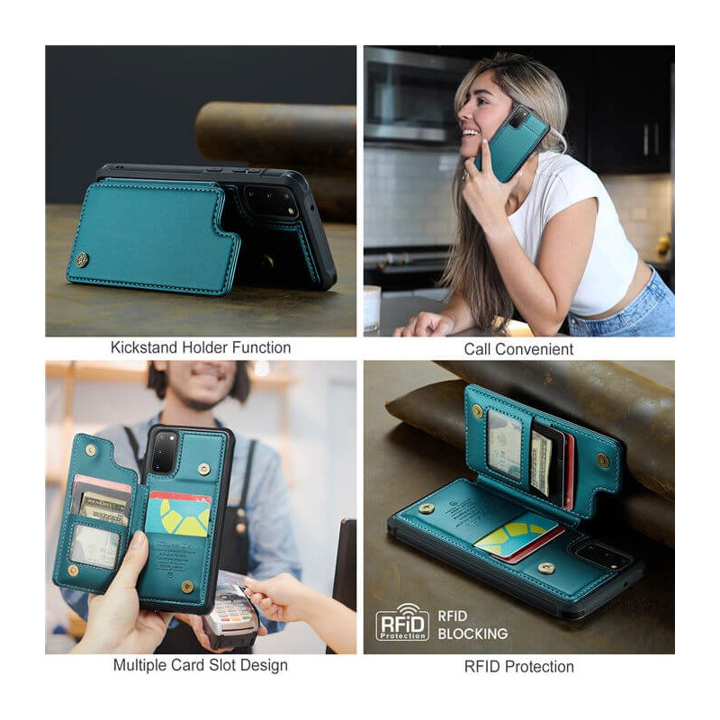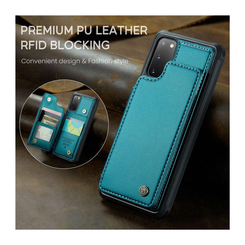 CaseMe Stöttåligt Skal Korthållare Stativ 4-Fack för Samsung S20 erbjuder stil och funktionalitet med skydd mot stötar och praktisk korthållare.