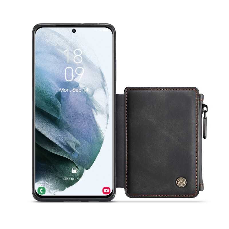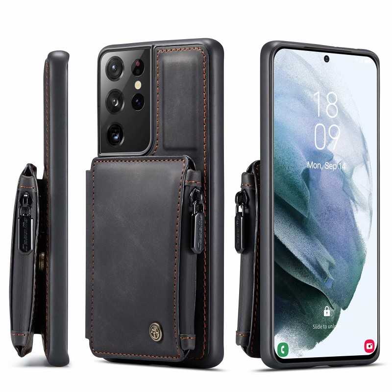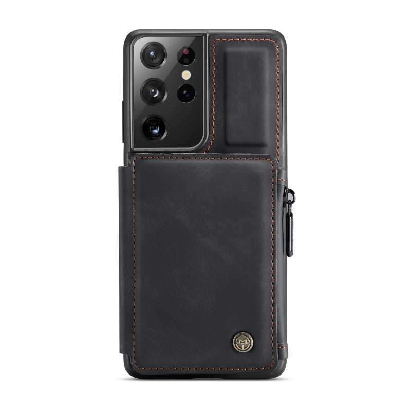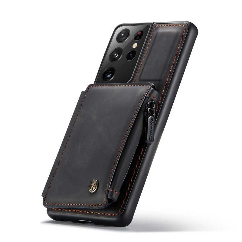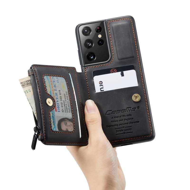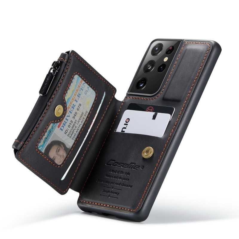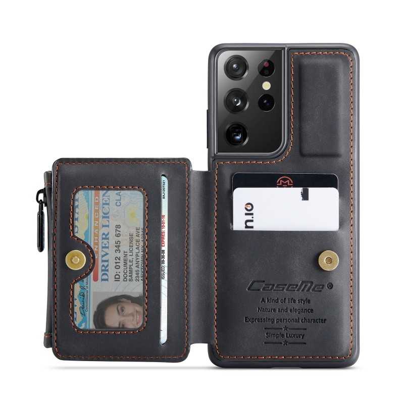 Samsung S21 Ultra Skal Korthållare & Dragkedja 4-FACK CaseMe Flippr erbjuder stil och funktionalitet med fyra fack för kort och en säker dragkedja.