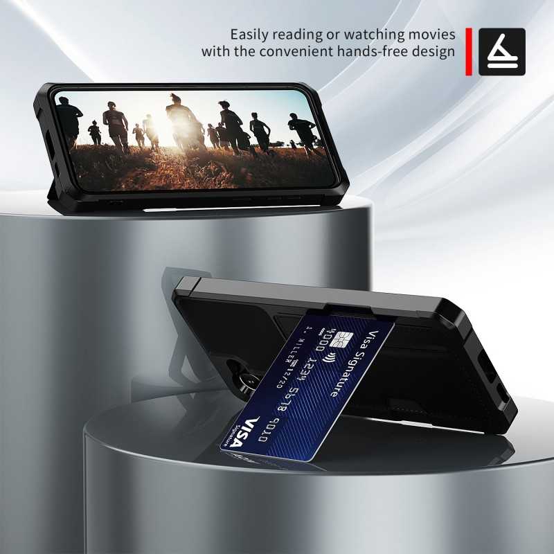 Samsung S23 Plus Stöttåligt Skal med Kortfack Solid V2 erbjuder optimalt skydd och praktisk kortförvaring för aktiva användare.