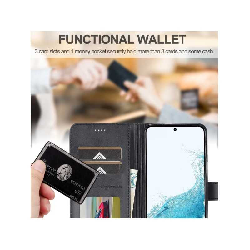 Detta eleganta plånboksfodral erbjuder en perfekt balans mellan stil och funktionalitet. Det skyddar din smartphone och ger en sofistikerad look. Med smarta fack för kort och kontanter är det idealiskt för den moderna användaren. Tillverkat av högkvalitativa material, säkerställer det långvarigt skydd och hållbarhet. Den exakta passformen håller din Samsung S24 Plus säkert, medan de mjuka kanterna ger ett bekvämt grepp. Fodralet har även en praktisk ställfunktion för handsfree-visning av filmer och videor. Perfekt för både vardag och resor, detta fodral blir din trogna föl