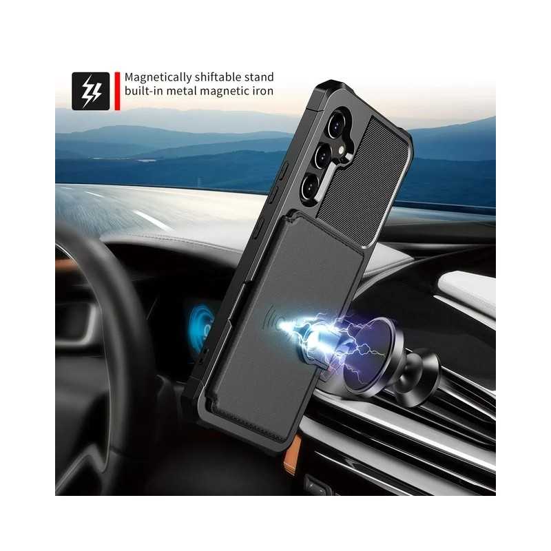 Samsung S24 Ultra Stöttåligt Premium Skal 4-FACK Solid V3 RFID erbjuder överlägset skydd och praktiska fack för kort, perfekt för den aktiva användaren.