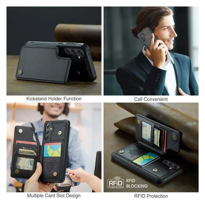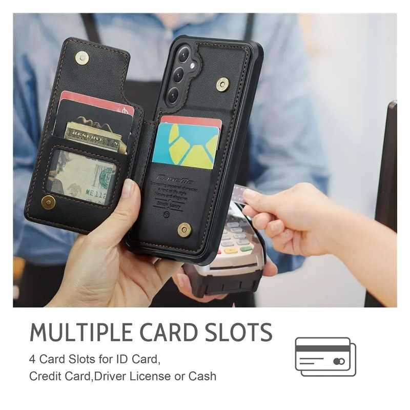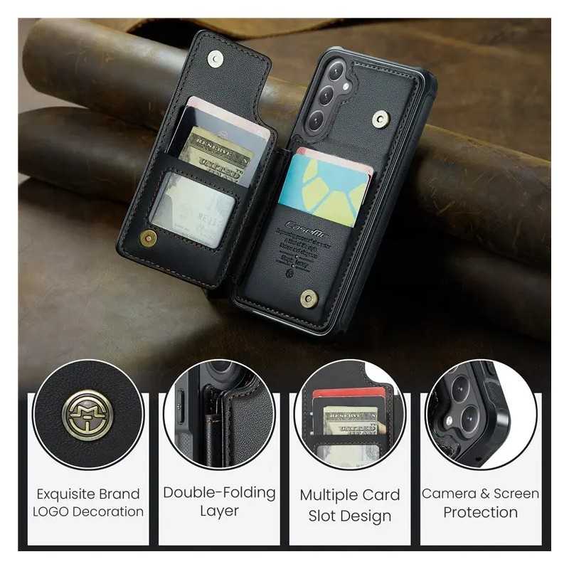 CaseMe Stöttåligt Skal Korthållare Stativ 4-Fack för Samsung S25 Plus erbjuder skydd, stil och funktionalitet i ett praktiskt och elegant paket.