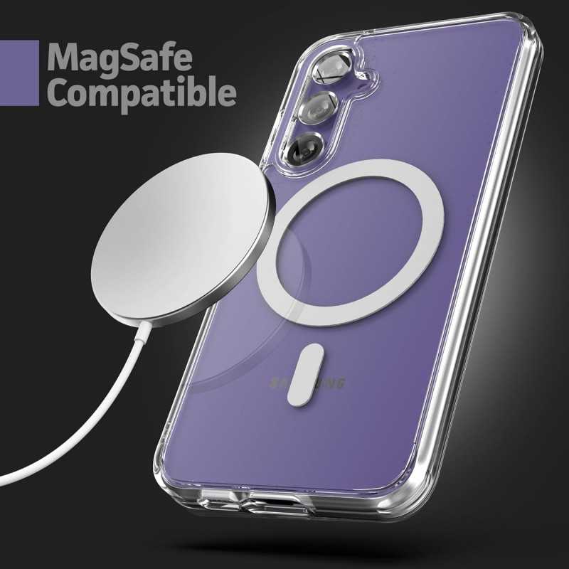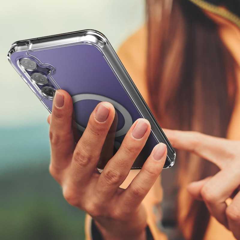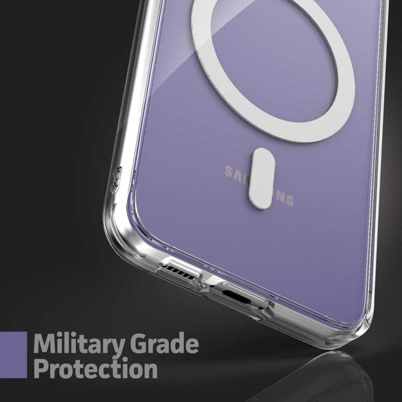 Samsung S25 Plus Transparent Stötdämpande Skal erbjuder stilrent skydd mot stötar och fall, samtidigt som det är MagSafe-kompatibelt för enkel användning.