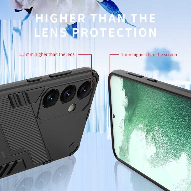 Samsung S25 Stöttåligt Skal med Kickstand ThinArmor V2 - Svart erbjuder optimalt skydd och funktionalitet för din smartphone i en stilren design.