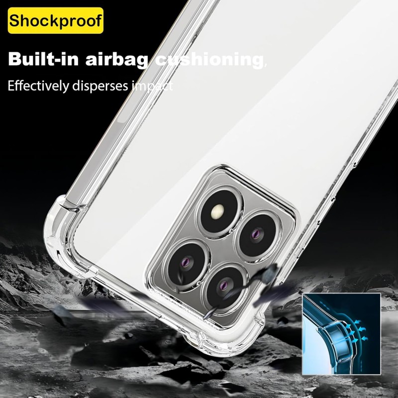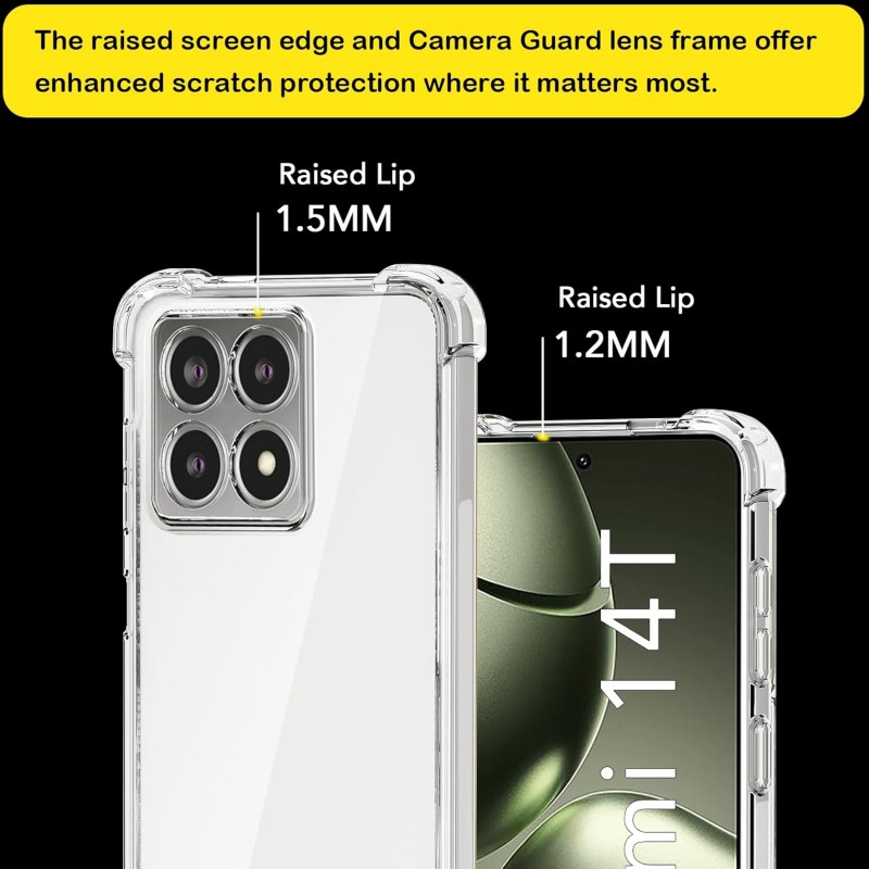 De fyra hörnen på skalet är konstruerade som en elastisk buffert som effektivt kan distribuera och därmed dämpa kraften från stötar, vilket skyddar din telefon från skador vid exempelvis fall. Den upphöjda ramen hindrar skärmen att komma i kontakt med en plan yta om telefonen placeras med skärmen nedåt.