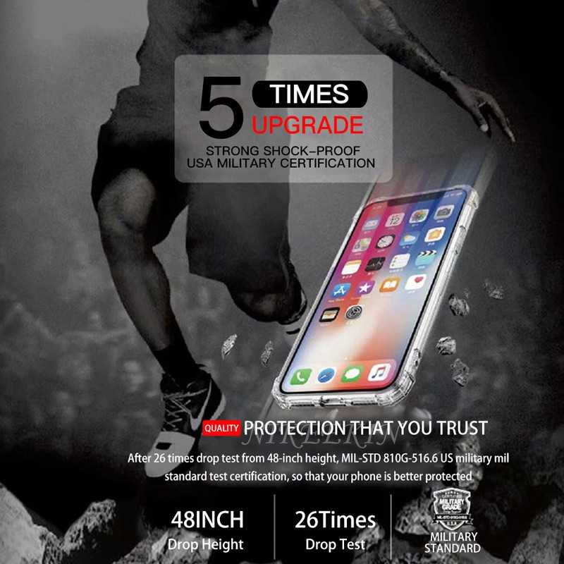 De fyra hörnen på skalet är konstruerade som en elastisk buffert som effektivt kan distribuera och därmed dämpa kraften från stötar, vilket skyddar din telefon från skador vid exempelvis fall. Den upphöjda ramen hindrar skärmen att komma i kontakt med en plan yta om telefonen placeras med skärmen nedåt.