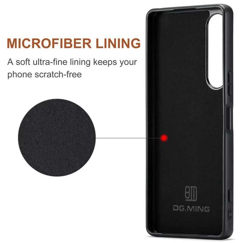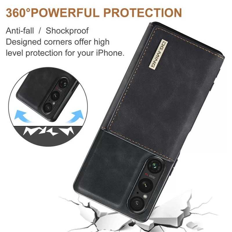 Ett stilrent, exklusivt och stöttåligt skal med en magnetiskt avtagbar korthållare med totalt sex fack varav fyra passar till ID-kort och bankkort, och två passar till sedlar och kvitton m.m. Den unika konstruktionen kombinerar funktionalitet och skydd då kortfacket också kan användas som stativ för att kolla på film/foto utan att behöva hålla i telefonen.